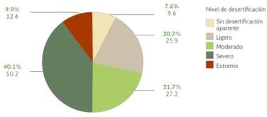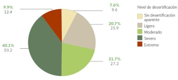 Fig. 1. Superficie de tierras secas afectadas con algún nivel de desertificación (Semarnat, 2016, pág. 187).