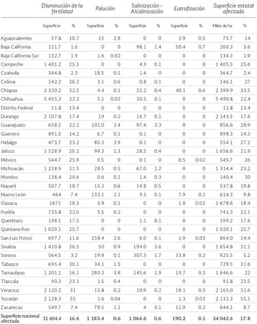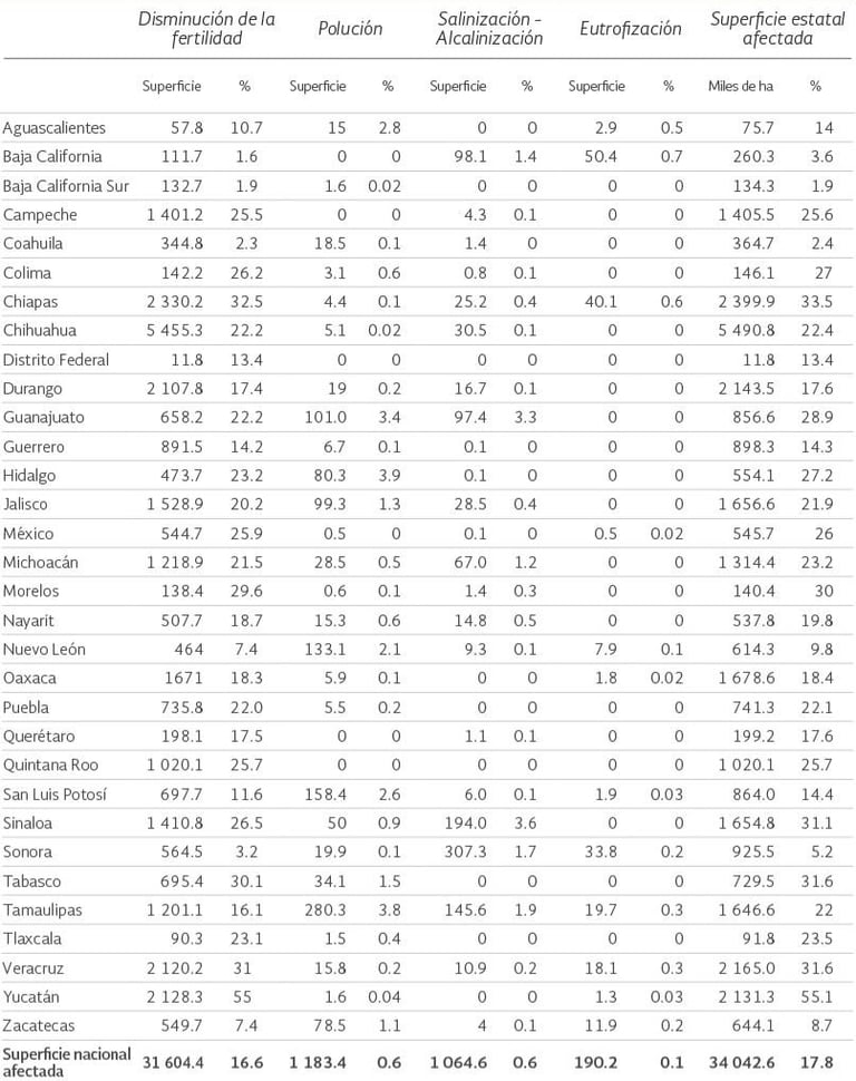 Cuadro 1. Superficie química según tipo por entidad. (Semarnat, 2016, pág. 175)